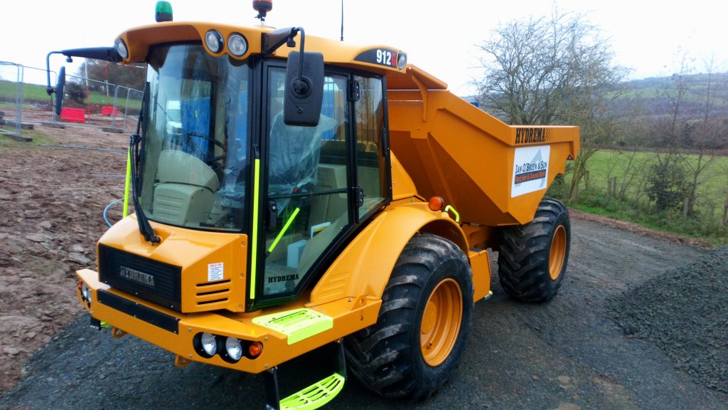James O’Brien was delighted with the new purchase and could not wait to put the machine through it,s paces in the coming months. Having always hired this type of Dumptruck in the past it was time to purchase our own said James. We have a lot of muck shift work in the pipeline for 2021 and this machine is ideal in the conditions we have here in the Herefordshire/Welsh borders. We had looked at traditional forward tip and dual view cabbed dumpers but we feel that these would have been a compromise and in reality when the conditions get tough the Hydrema is the tool for the job !!.